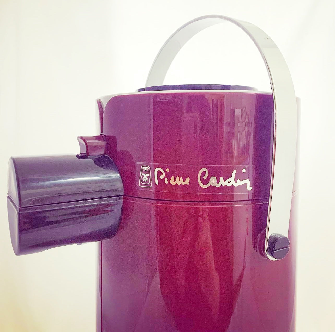 Gorgeous vintage 1.9L Pierre Cardin airpot or hot beverage dispenser by Japanese modern plastics designer Zojirushi. Glorious 80s era vintage plastic, all in brooding maroon and black, with a chrome handle! This is a very high quality piece, using high end materials and sleek, modern design. This airpot dates back to the 80s and is in incredible vintage condition - it presents as though it’s never been used. This is a very hard to come by and collectible piece.