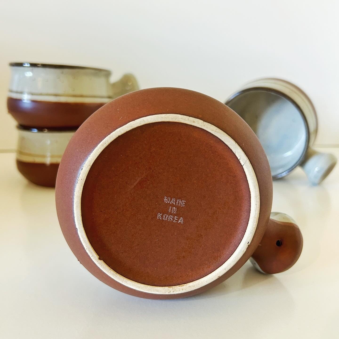 It’s finally soup weather! These ramekins are perfect for hot pumpkin soup on a cold day - wrap your hands around them and pretend you’re in a log cabin in front of a roaring fire. This full set of 4 stoneware soup ramekins are in excellent vintage condition with not notable flaws.